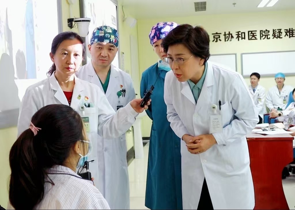 2月27日,北京协和医院院长张抒扬(右一)及相关专家为罕见病患者进行多学科会诊。新华社记者 徐鹏航 摄这位患者是我国首例,全球第16例确诊该罕见疾病的患者。普通内科住院医师金相红向在场的专家详细介绍患者病史后,十几个科室的专家开启现场问诊: